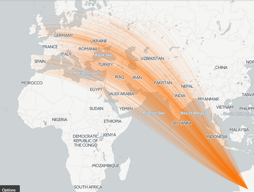 Y el ejemplo que quería hacer para terminar me parece demasiado complicado como para reexplicar, lo interesados tenéis un post del mismísimo Paul Ramsey explicandolo: Jets and Datelines. Yo solo voy a realizar un par de pasos solamente para que veáis un poco de PostGIS en acción, intentando evitar la parte complicada de SQL.