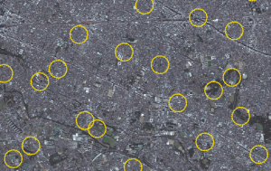 Para ello se ideó un estudio mediante círculos muestrales que seguían una distribución semialeatoria. La digitalización se debía de continuar hasta que unas variables estadísticas para esa zona basadas en las medidas comentadas se estabilizaran: para ciudades homogéneas se hacían menos círculos, para las heterogéneas muchos. Hablamos de 200 ciudades, con zonas de expansión de diferentes épocas, empezamos a hacernos una idea de cuanto trabajo manual hay..